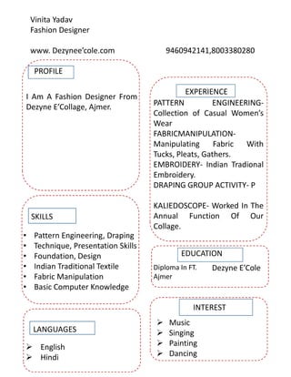 Vinita Yadav Fashion Design Student Nsqf Level 5